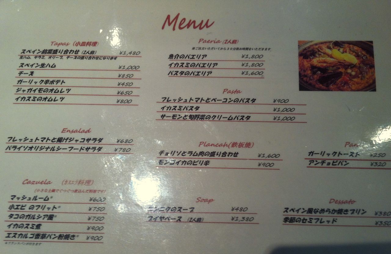 食べ物屋にしては パスタとパエリアだけ。。。