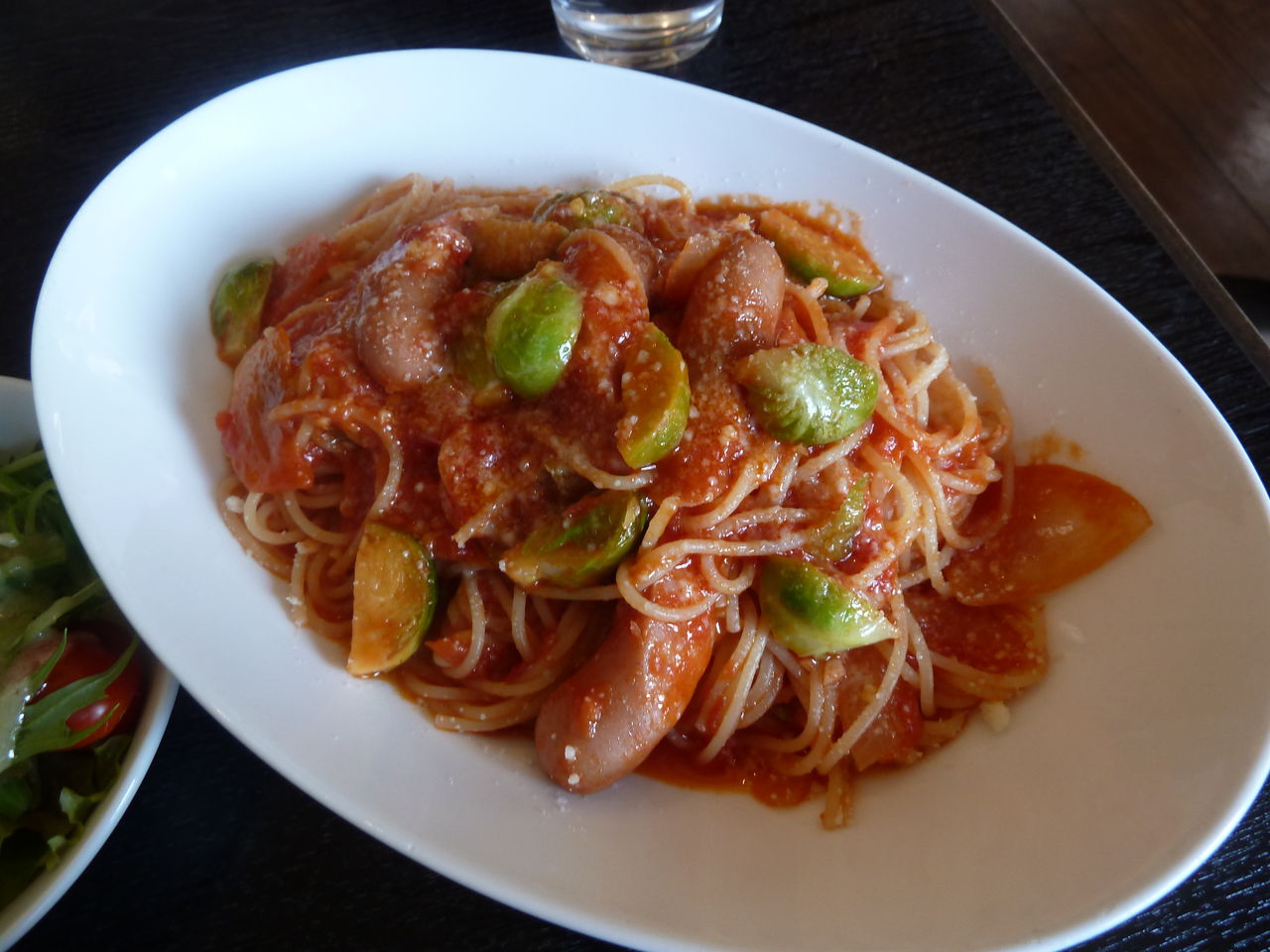 芽キャベツとウィンナーのトマトソースパスタ